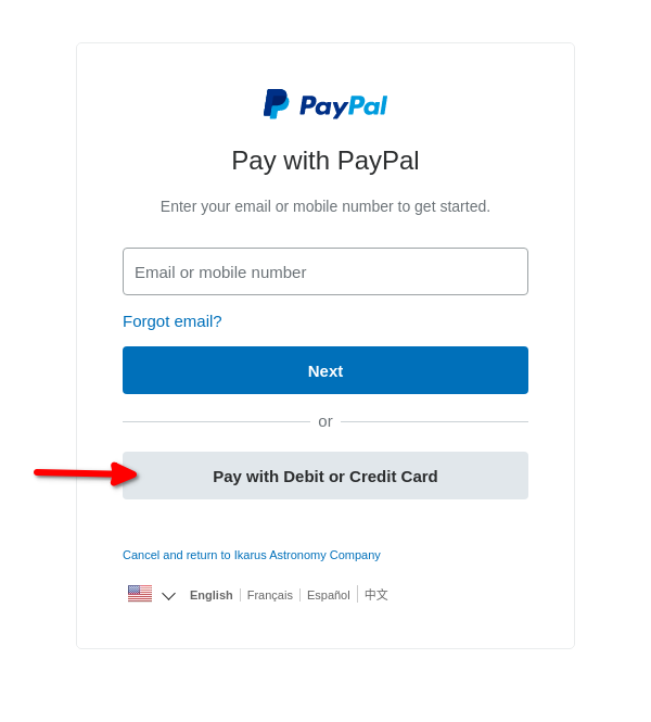When checking out using Paypal, you can skip account sign in by click on Pay with Debit or Credit Cardas illustrated below.
